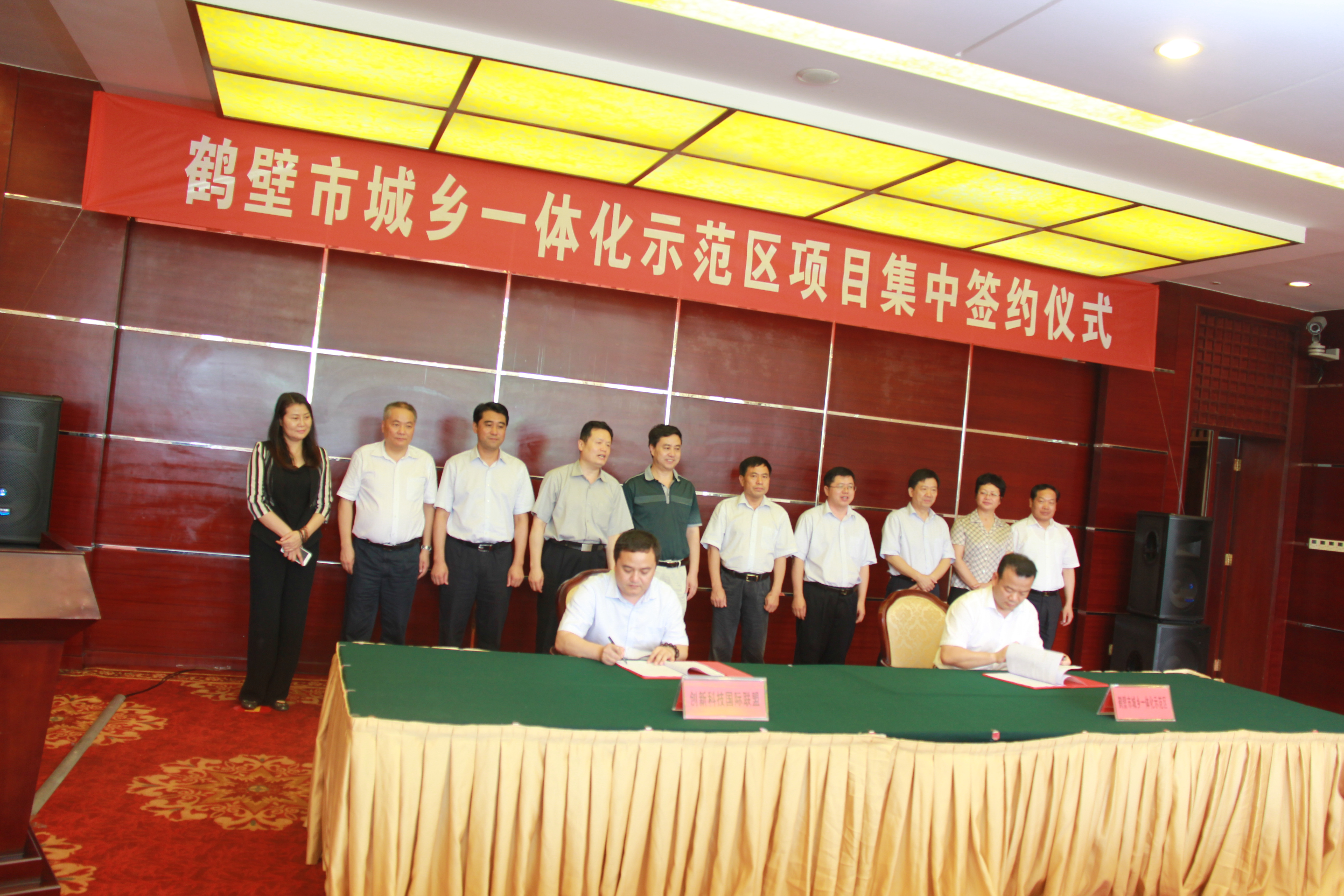 7月28日,市城乡一体化示范区总投资74亿元的国际(鹤壁)科技创新园、国际(鹤壁)科技创业园、国家863鹤壁科技创新园、红星美凯龙城市综合体4个项目集中签约仪式在鹤壁迎宾馆举行。省科技厅厅长贾跃,市委书记范修芳,市委副书记、代市长唐远游,市委副书记费银普,省科技厅副巡视员刘保民,市委常委、市委秘书长李成宽,副市长高雅玲、朱言志等出席仪式。